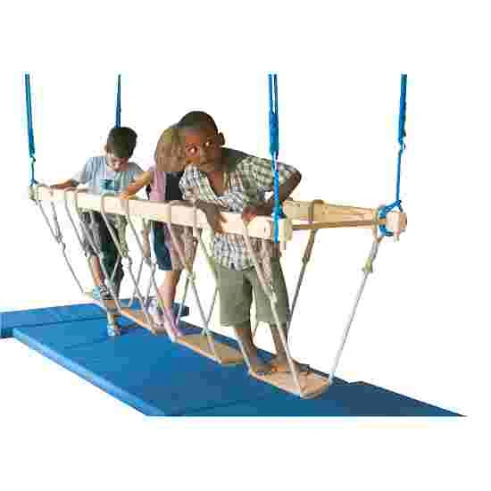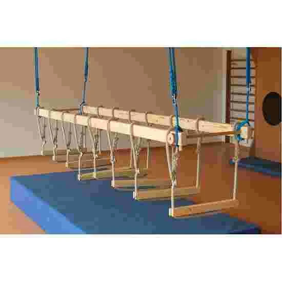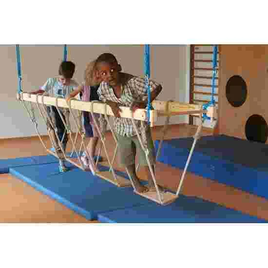 With the jungle bars, you can increase the challenge for children by means of 4 different versions: you can attach the jungle bars to the ceiling using a 2-point or 4-point attachment. With the 4-point attachment, the swinging motion is calmer, whilst the 2-point attachment makes it more dynamic and therefore a greater challenge. You can also choose between walking along the continuous beam or 4 foot panels, each held by 2 ropes that are securely fastened to the foot panels via 2 recesses on the sides.