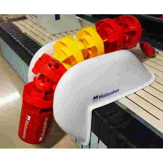 This clever invention is a great help for unrolling and rolling up your swimming lines. Simply place the “Lane Slider” on the edge of the pool – a rubber edge protects the pool and provides a good grip – guide the line over the slide and then put it away again afterwards. As the slide lies over the edge of the pool in an “L” shape, the line’s floats can no longer hook onto the edge of the pool. One person alone can unroll and roll up the lines smoothly; no need for a second person to untangle the twisted lines. This makes setting up and putting away swimming lanes not only quicker and easier, but also more gentle on the material – neither the edge of the pool nor the swimming lines can become damaged by transferring the lines from the reel to the pool and vice versa. Whether you are preparing a swimming pool for a competition or need to return the pool to its normal state afterwards, you will quickly discover you can’t do without the Malmsten “Lane Slider”, particularly when there are several different swimming lanes or when the lines are moved regularly.