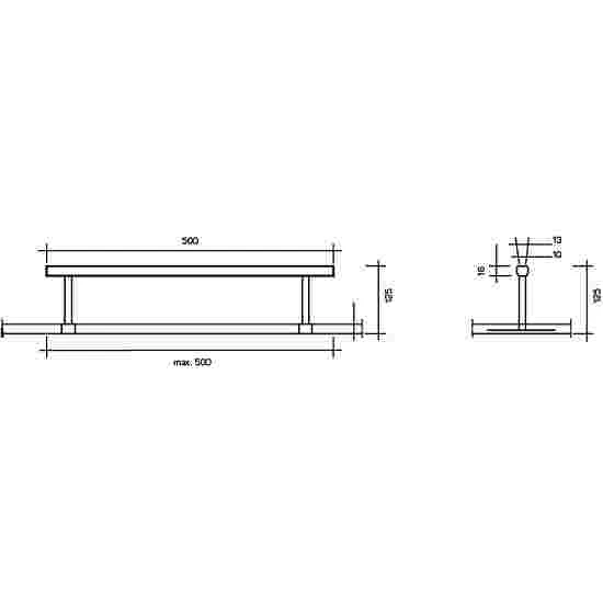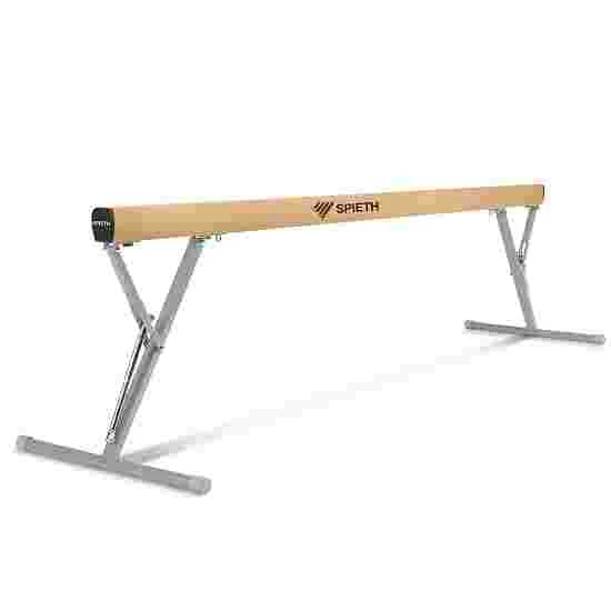 The body (L×W×H: 500×10×16 cm) is made of a non-warping special alloy. It is padded and covered with hygroscopic imitation leather. In comparison to that of conventional balance beams, the running surface (10 cm wide) of this model is considerably softer. The beam ends are made of PUR foam, which reduces the risk of injuries when dismounting.