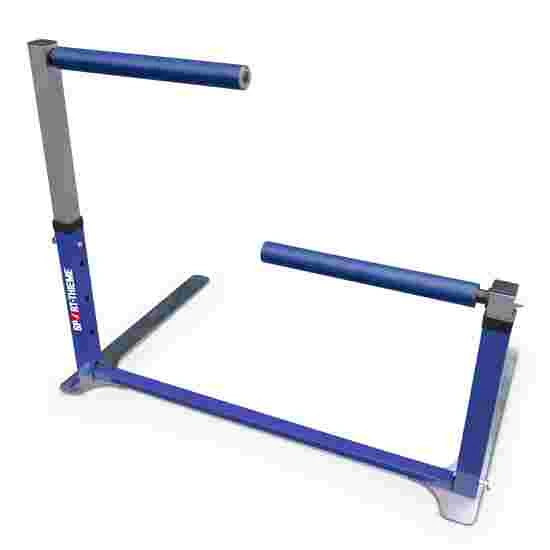 Versatile, for schools and clubs as well as rehabilitation and fitness. Soft, thanks to two-piece padded crossbars. High-quality and accurate telescopic push-button height adjustment. Made of steel, with weighted base. 2 variants – LxWxH: 107x70x50 mm, height adjustment: 50–85 cm, 11 kg; and LxWxH: 107x70x85 mm, height adjustment: 85–150 cm, 13.5 kg.