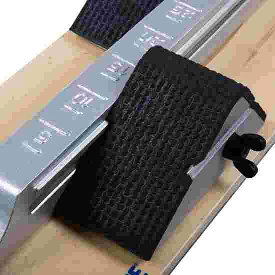 The Sport-Thieme indoor starting blocks are designed exclusively for indoor use. Made of wood and aluminium, they are built to last. The aluminium rail is mounted on a wooden board that measures 62×24 cm. For increased stability, the underside has been treated with a special, slip-resistant coating. The base slopes forward to prevent tripping. The starting blocks can effortlessly and quickly be adjusted, which makes indoor training much easier.