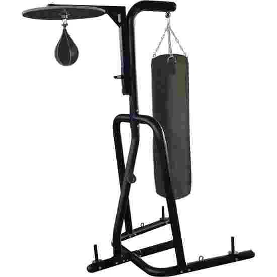 The punchbag stand with platform is the ultimate piece of training equipment for use at home. When wall or ceiling assembly is not possible, the free-standing boxing station is the ideal solution for you. The black punchbag stand features two different boxing stations, from which you can hang a punchbag and speed ball.