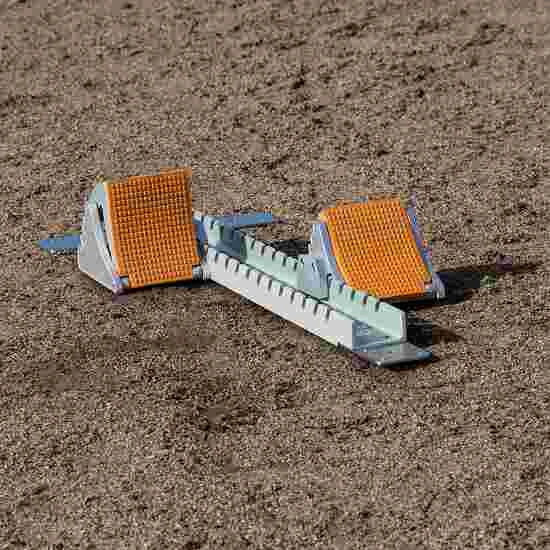 The Sport-Thieme “Super” competition starting blocks will perfectly complement your running style. Made of aluminium, they withstand the toughest of conditions. The rail’s underside features 1-cm-long spikes for easy and secure attachment to synthetic tracks. Thanks to the additional ground anchors, the “Super” starting blocks can also be fixed to cinder tracks.